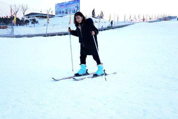 6.接下來該學習平行轉彎滑行了。兩只雪板平行,與臀同寬,通過重心高低左右的交換實現轉彎。