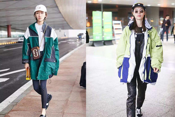 超大碼的沖鋒衣如果搭配不好就會顯得過于臃腫,那么一定要記住上寬下窄的原則。“短款+高腰”是永遠(yuǎn)不可拆散的好搭檔,瞬間可以把上下身比例拉成3:7,同時記得選擇沖鋒衣時,也要get住這一點哦,拒絕合身形的,大大的版型才是王道,下身要搭配利落的小腳褲才有型,避免過于臃腫肥大的搭配。如果這時再踩一雙有跟的踝靴,你就是街拍的焦點。將領(lǐng)口拉大,秀一把鎖骨。當(dāng)然如果下身搭配超短褲露出大長腿,也可以達(dá)到拉長身形的效果。