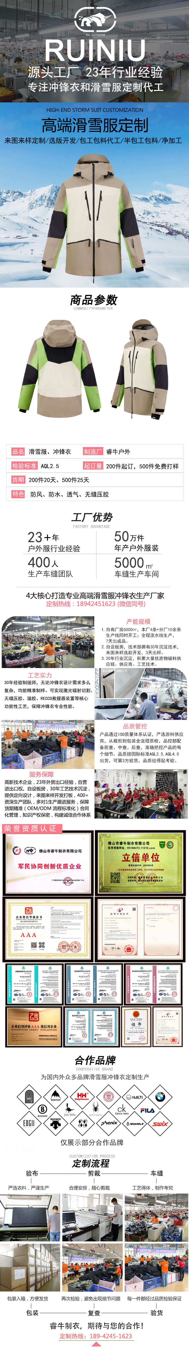 優質面料:專業高端滑雪服定制23年沉淀優質供應商資源,可根據客戶需求精選優質面料。